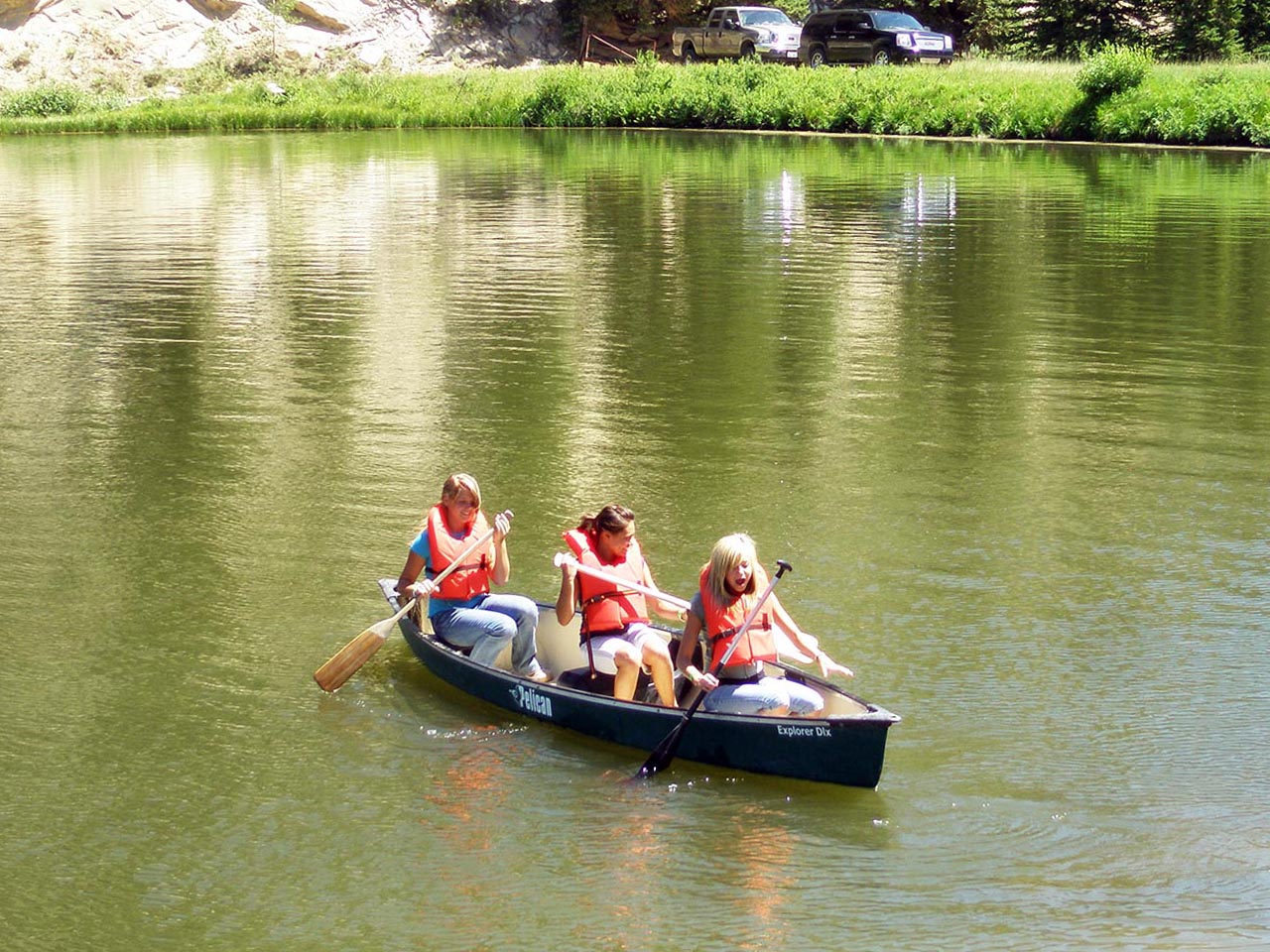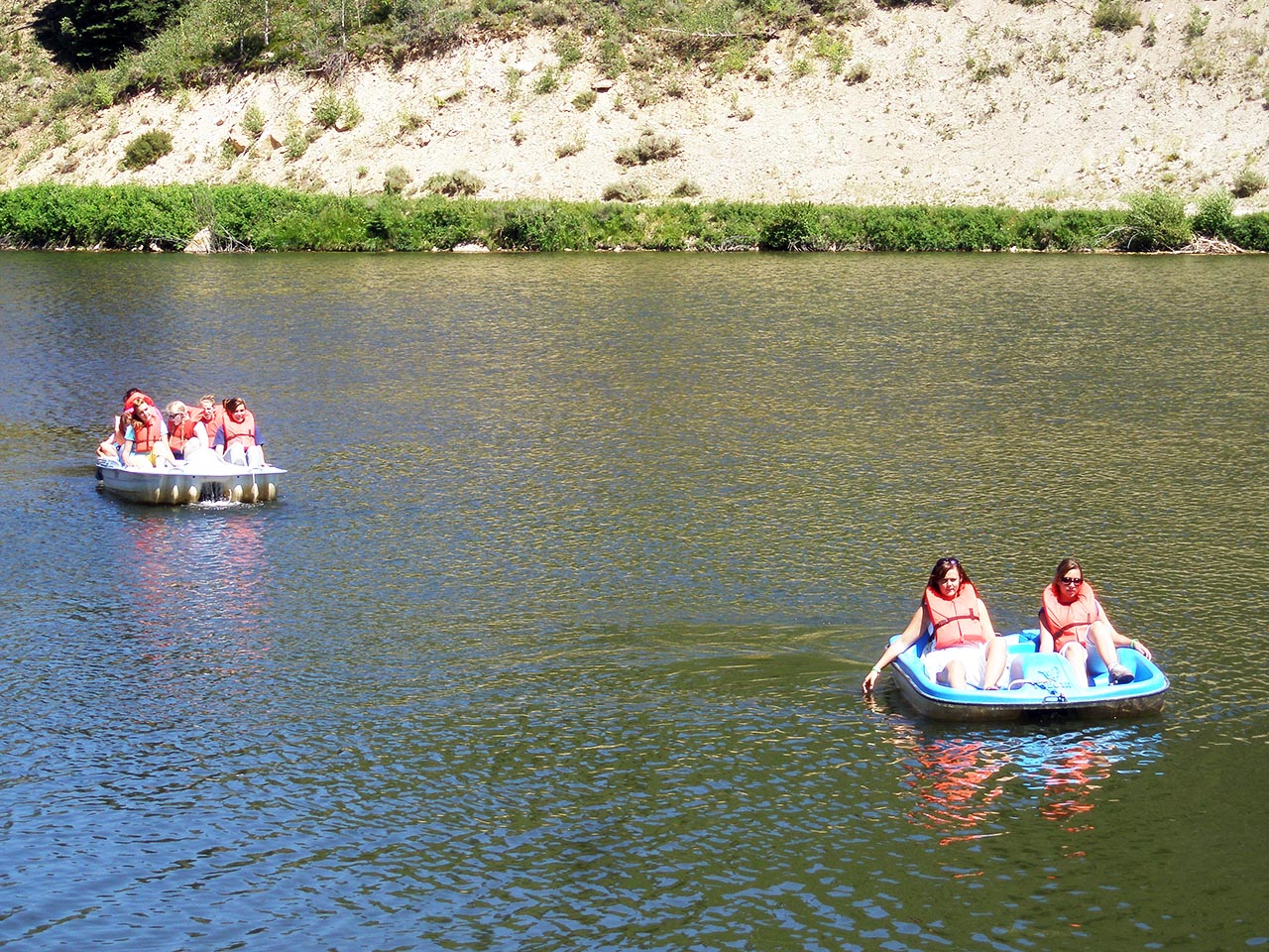 The lake front activities are assigned to groups on a rotation schedule for up to 50 people per time slot. Check in at the dock 10 minutes prior to boating time. Boaters must wear provided life jackets at all times while out on the water and on the dock. Boats hold 2-adults, 2-children. No children under 12 without an adult.
