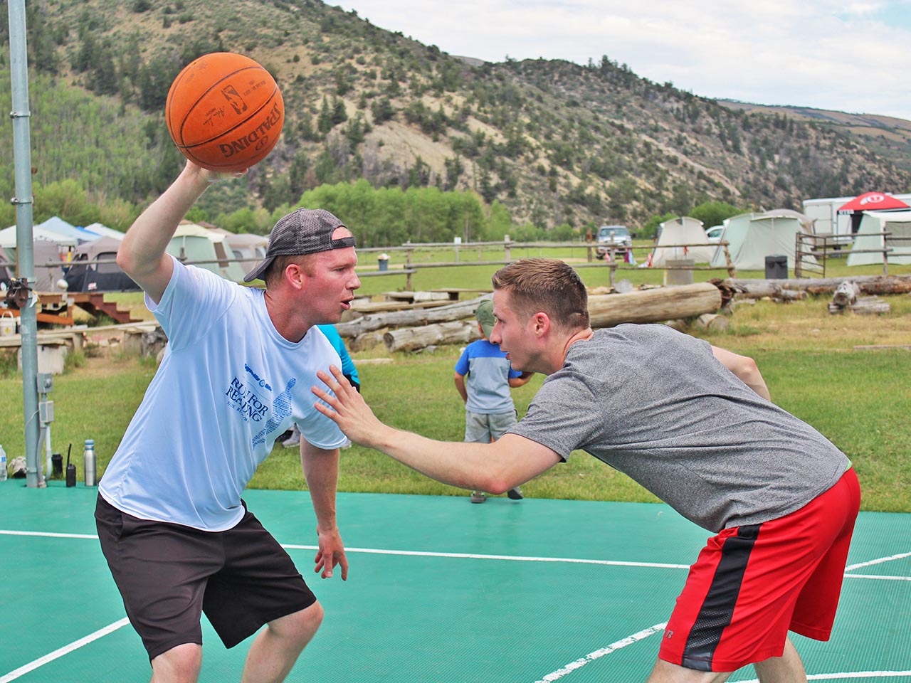 The Sports Court is assigned to groups on a rotation schedule from 9:00 a.m. to 10:00 p.m. Be sure to consult your schedule for when your group may use the Sports Court. Guests can play a variety of games such as basketball, volleyball, tennis, and shuffleboard.